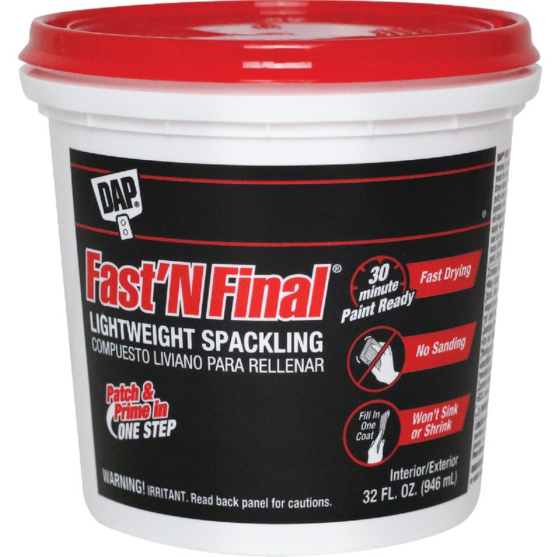 DAP Fast Dry Premium Spackling is a professional-grade spackling compound uniquely formulated to provide strength and fast drying capabilities allowing your repair to be painted in as little as 15 minutes. Its ready-to-use, smooth formula spreads easily and will not sink, shrink or crack, filling even the largest of drywall repairs in one coat.
