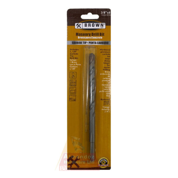 Brown USA Carbide tip masonry drill bit is manufactured using premium carbon steel. Hardened premium carbide bit stays sharp longer for easier drilling. Includes 1, 120° angle carbide tip drill bit