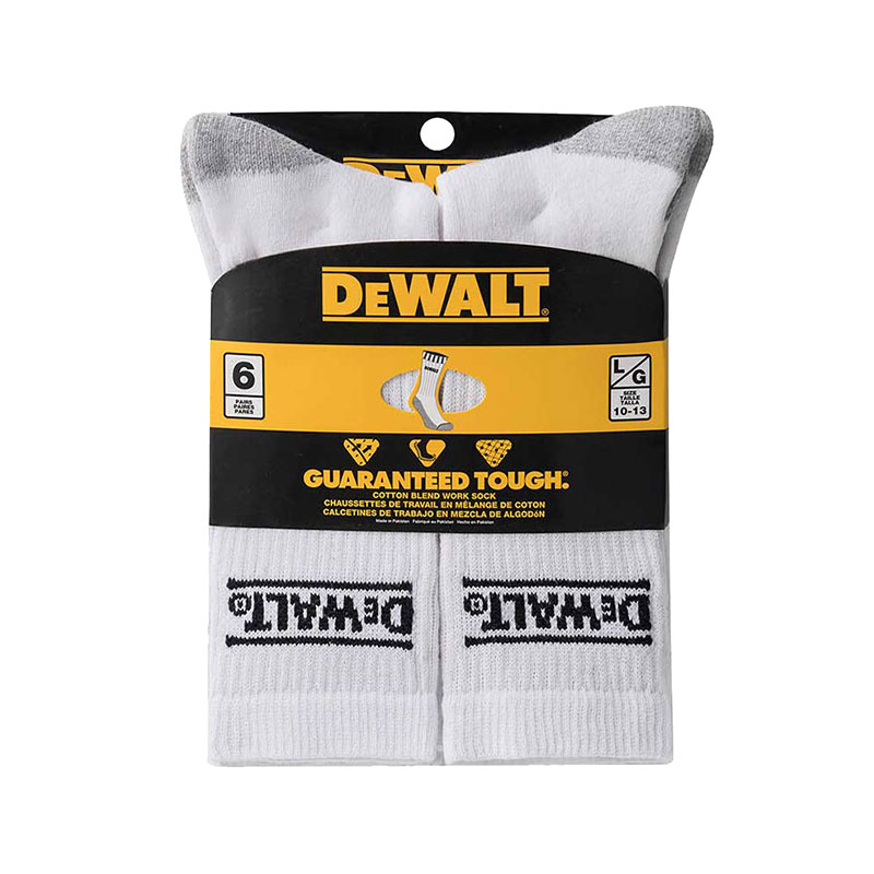 Dewalt Men’s White Cotton Blend Work Sock 6-Pack Large