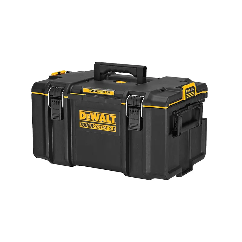 The ToughSystem 2.0 Medium Toolbox has patented auto-connect side latches, allowing for 1 hand operation. It also has 2-piece metal wire front latches for added durability when securing tools inside of the box. This toolbox offers 20% more tool storage when used with DWST08165 and DWST08450 as part of a tower.