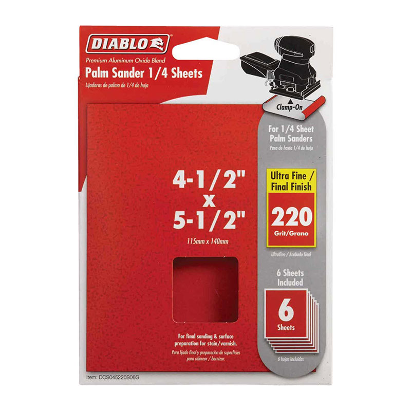 Diablo Clamp-On 220 Grit 4-1/2 x 5-1/2 Inch 1/4 Sheet Power Sanding Sheet 6 Pk