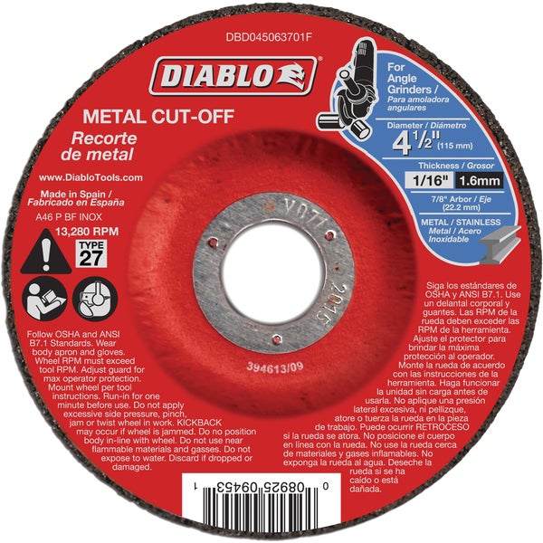 Diablo Type 27 4-1/2 In. x 1/16 In. x 7/8 In. Metal Cut-Off Wheel