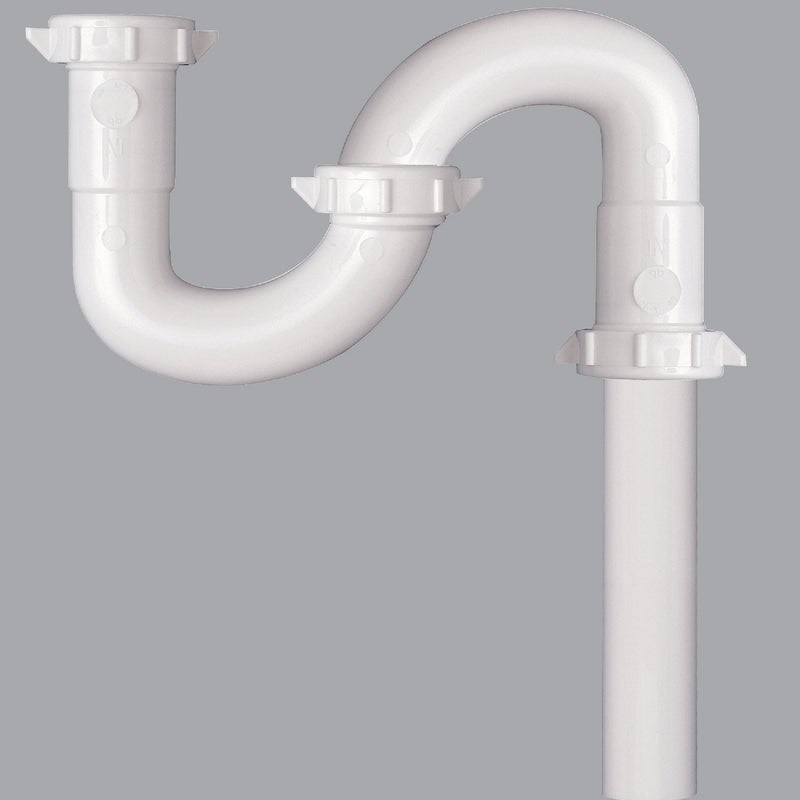 Replacement S-trap for bathroom lavatory drains. White. With nuts and washers for assembly. Do it bagged.