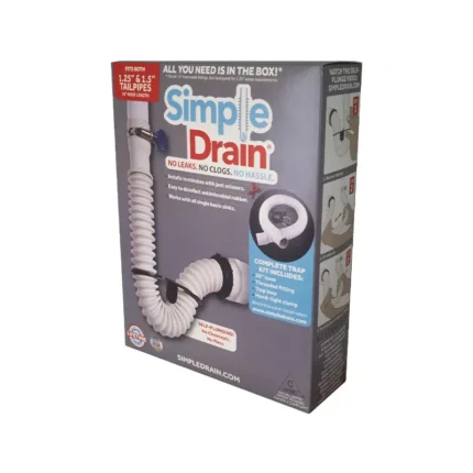 Innovative, self-plunging sink drain solution that installs in minutes. Introducing a new P-trap that is sure to be a game-changer. With its patented flexible, durable rubber hose design, Simple Drain offers headache-free installations. Pipe clean-out is a breeze, and clogs are a thing of the past thanks to the innovative self-purging feature. No plunger or chemicals required!