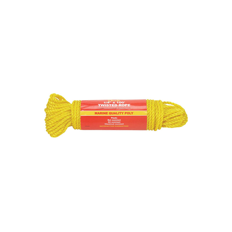 Marine quality twisted polypropylene rope. Floats, which makes it ideal for use in a boat or around water. Rot-resistant, oil-resistant and chemical-resistant. Works well in a wide variety of indoor and outdoor applications. Lightweight and flexible, making it easy to use. Satisfaction guaranteed.