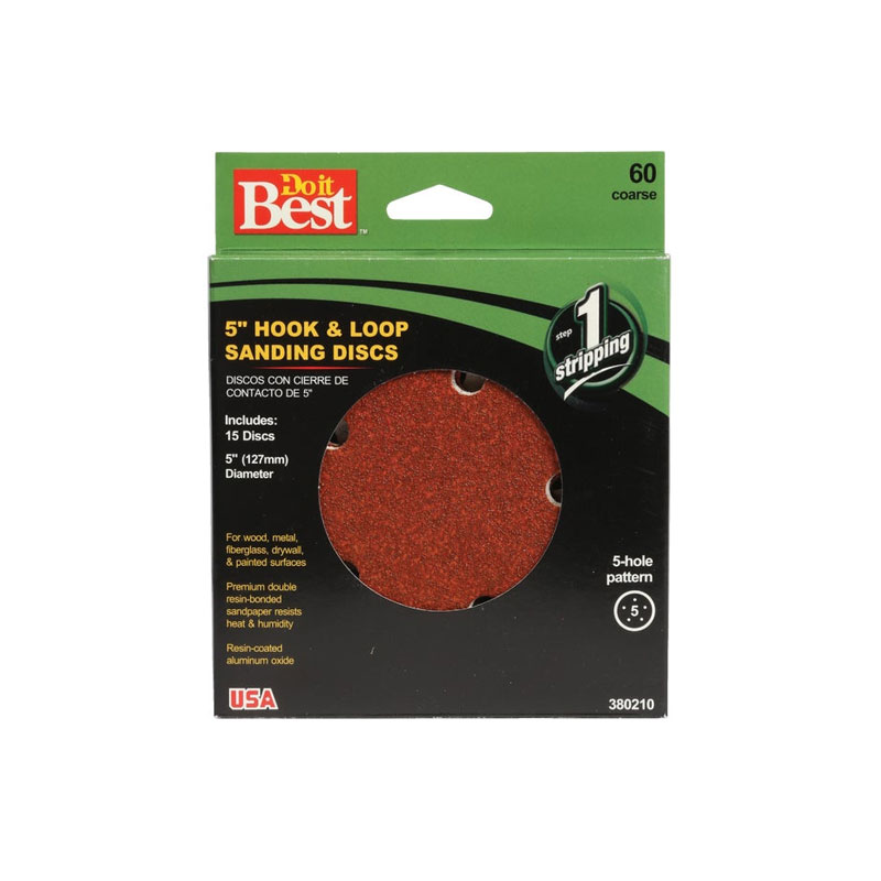 Do it Best 5 In. 60-Grit 5-Hole Pattern Vented Sanding Disc with Hook & Loop Backing (15-Pack)