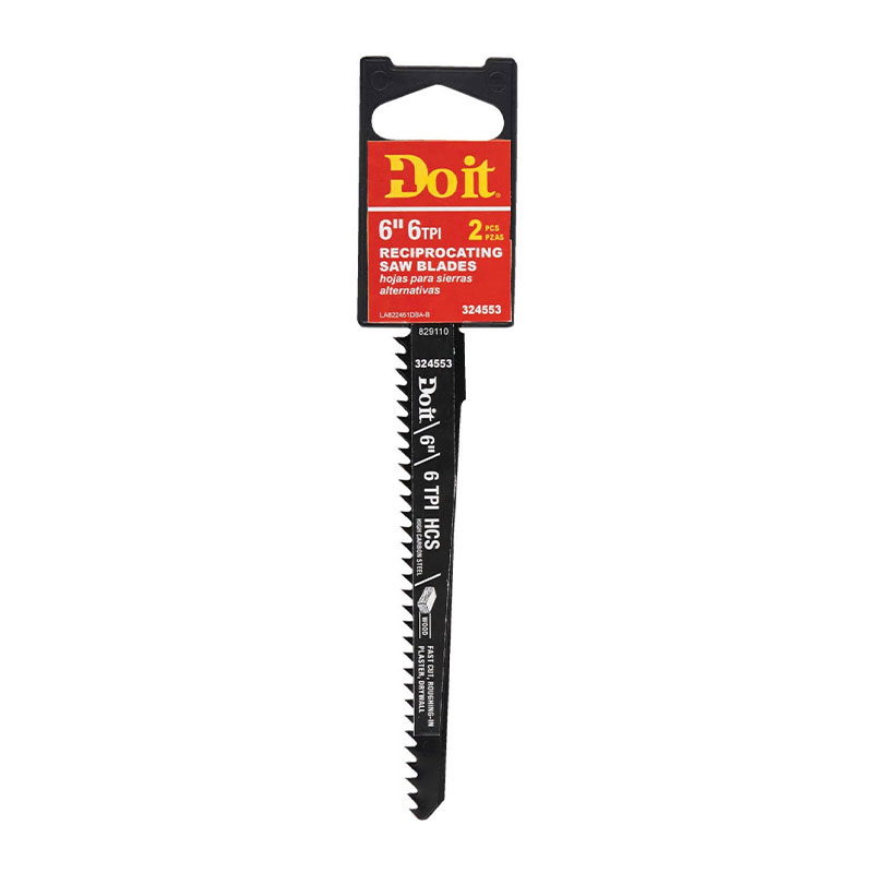 Do it Best carbon steel wood cutting reciprocating blade. 2 blades per card.
