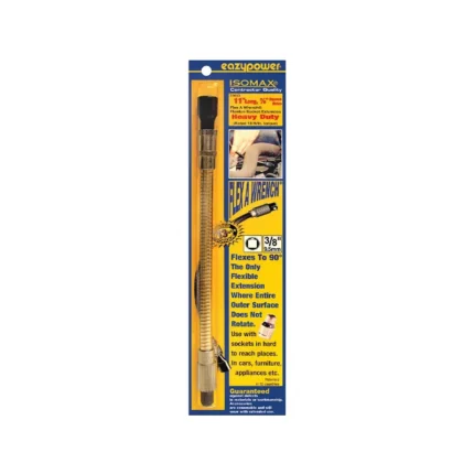 11 In, 3/8 In. square drive, Flex A Wrench for heavy-duty use with 3/8 In. sockets. Flexes to a full 90 deg.. Outer cover does not rotate so it can be used safely at any speed. Rated for 13 ft./lb. of torque. Designed for electric and rechargeable drills or screwdrivers.