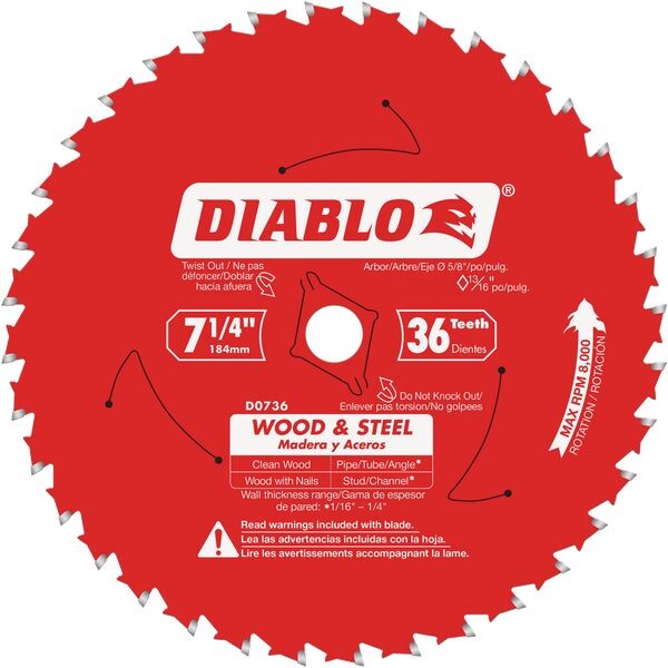 Diablo 7-1/4 In. 36-Tooth Wood & Metal Circular Saw Blade
