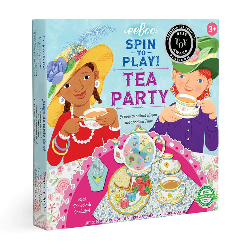eeBoo’s Tea Party Spin-to-Play game helps young children practice patience and social skills. Spread the real fabric tablecloth, ready the teapot spinner and spin to choose for tea, sandwiches, fruits, desserts, cream and sugar, napkins and utensils. The first guest to collect an item from every category wins the game, but everyone will enjoy choosing among the tempting party goodies. A colorful 20” x 20” tablecloth is also included. Skills: Develops patience, social skills and categorization skills. Age: 3+. Players: For 2 to 4 players.