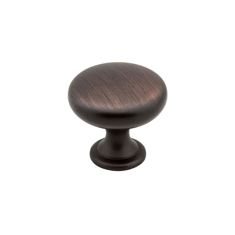 This Brushed Oil Rubbed Bronze finish cabinet knob with a round design is a multi-pack package by Elements. A perfect blend of craftsmanship in traditional and contemporary design to complement any decor. Knobs are 1-3/16 Inch in diameter. They are used with bath, closet and kitchen applications. Mounting hardware is included with this cabinet knob multi-pack.