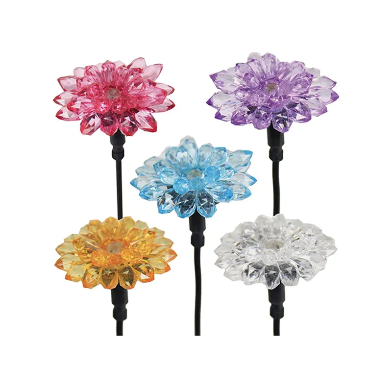 Delightful mini Dahlia solar LED (light emitting diode) plant stake. Glows at dusk, illuminating the beautiful petals. Adds a perfect touch of warmth and charm to your garden all year long. Made of durable plastic.