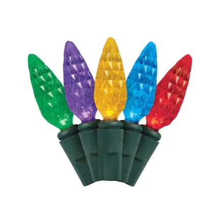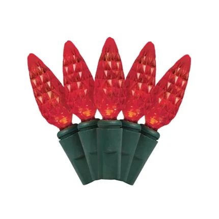 This energy saving strawberry style C6 LED (light emitting diode) light set features end connectors to connect multiple sets together and colour that will not fade or flake. If one or more bulbs burn out, the others stay lit.