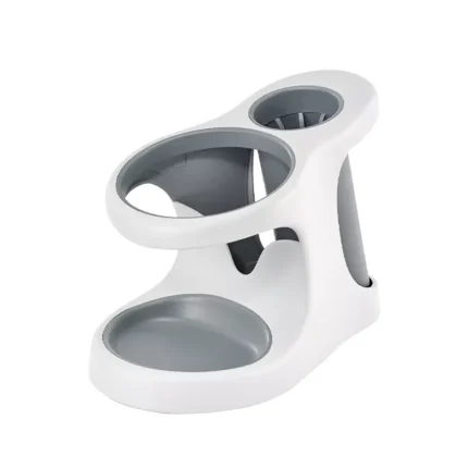 Style and Store Styling Tool organizer for hair dryers and curling irons, perfect for the counter or vanity. Plastic and high-heat rubber construction offer two oversized compartments for safe storage. High-heat silicone sleeve provides safe storage for hot curling irons or straighteners.