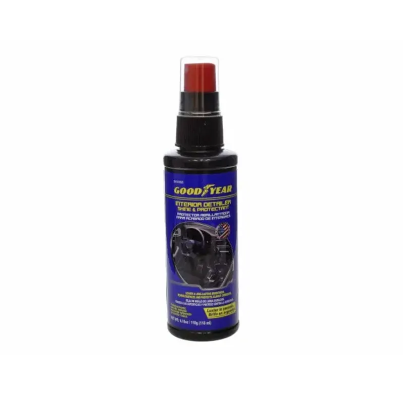 Goodyear Interior Detailer Shine & Protectant is a high-performance formula designed to clean, protect and give a brilliant shine to your vehicle’s interior, including the dashboard, door panels and vinyl parts.