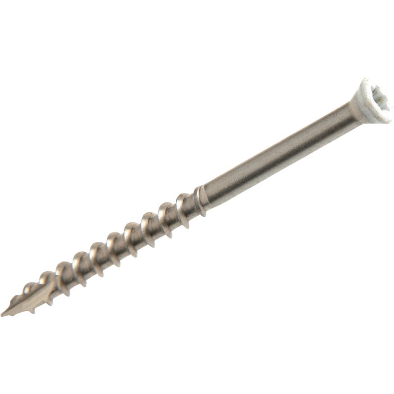 Features a Lifetime Guarantee against rust and corrosion. Certified Type #305 Stainless Steel. They feature a Star Drive White Head that virtually eliminates cam-out. Type 15 point for fast starts and minimized splitting. Packaged in a clean, neat plastic jar. A unique hinged lid allows for quick access to the fasteners. Durable packaging eliminates the crushed boxes and spilled fasteners that happen with traditional cardboard packing. Includes a Free Torx bit in each package. Coverage is approximate when installing 2 fasteners per deck board based on 16″ OnCenter.