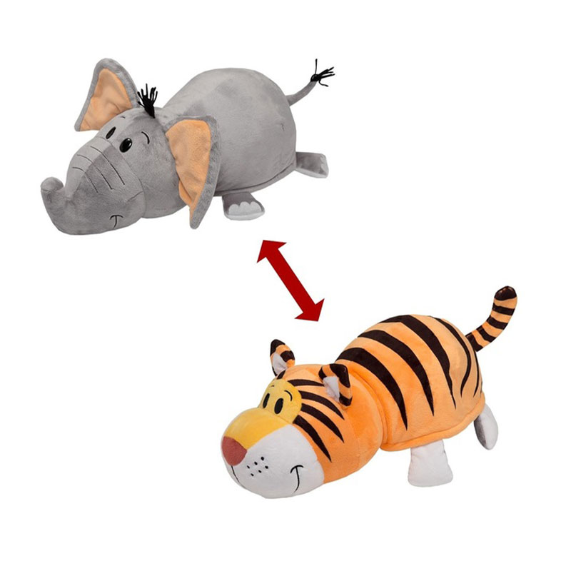 This Flipazoo Reversible Elephant & Tiger Stuffed Toy is the perfect friend that starts out as an elephant, but in just a flip of the wrist, it transforms into a tiger. It features bold colors with different textures and is super soft which is perfect for interactive play.