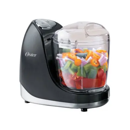 Oster 3 Cup Mini Food Chopper is great for all of your chopping needs! Let this chopper do all the hard work for you! Features 2 high and low speeds with an option pulse for greater versatility and control. Base in black with chrome details and a modern sleek design that will provide a contemporary touch to your kitchen. Accessories are easy to remove and wash, including the automatic dishwasher.
