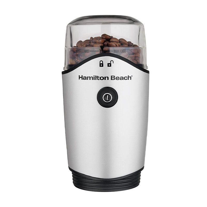 The Hamilton Beach Spice & Coffee Grinder is quieter than the leading competitor, which means you can turn your favorite coffee beans into fresh grounds with less noise. This electric coffee grinder makes quick work of turning your beans into grounds for brewing. The durable stainless steel blades can also grind spices, and the removable grinding chamber makes filling and cleanup easy. The cord wraps around the base in a hidden compartment for neat storage. The grinding chamber removes for easy filling of whole beans or spices. You can grind up to 9 tablespoons of beans, enough for 12 cups of coffee. Once finished, remove the chamber for easy cleaning.