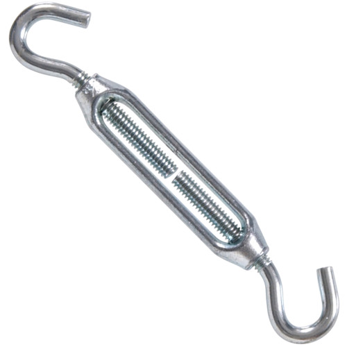 HOOK & HOOK: With a hook at each end, this turnbuckle offers easy slipping on and off of cables.