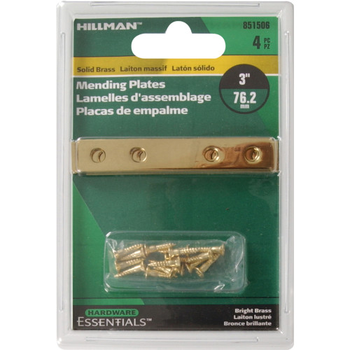 Hardware Essentials Solid Brass Mending Plate Bright Brass (3″)