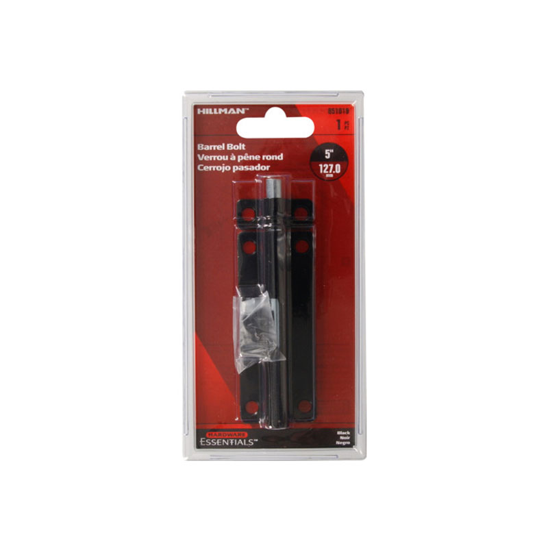 Hillman Hardware Essentials barrel bolts black (5 Inch) are designed so the bolt fits snug into the chamber, reducing the risk of mount loosening. These barrel bolts use #7 screws for additional strength and security. Ideal for doors, sheds, gates and more. Use for right or left side applications. Tools required: marking pencil, power drill, 1/16 Inch drill bit and a handheld screwdriver.