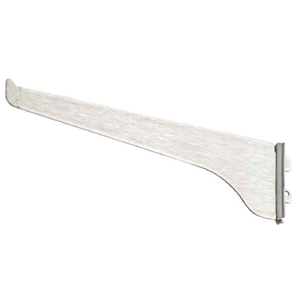 Reinforced brackets lock into slotted standards for strong, secure, weight-bearing support. Features a shelf retaining lip and a spring clip for stability and friction lock. Brackets are vertically adjustable in 1 In increments. Regular-duty, single slot design.