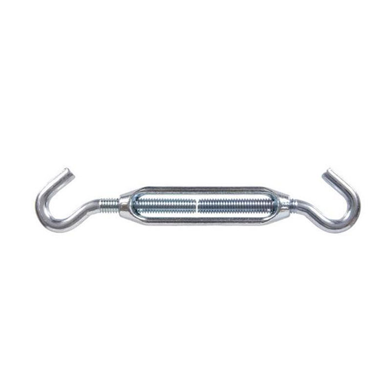 Hardware Essentials Hook and Eye Turnbuckles Zinc (#10-24 x 5-5/8") are great for adjusting tensions between rope or cables. One hook is located at each end of the turn buckle. Slowly turn either to adjust tension. Available in several sizes. Each Turnbuckles is zinc finished.