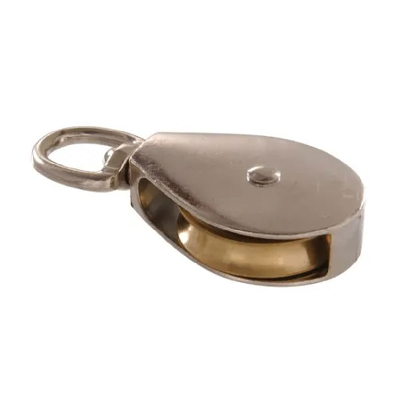 Single Sheave Swivel Pulley Nickel 2″ is designed with a zinc die-cast body with nickel plating. Each pulley has a solid brass sheave.