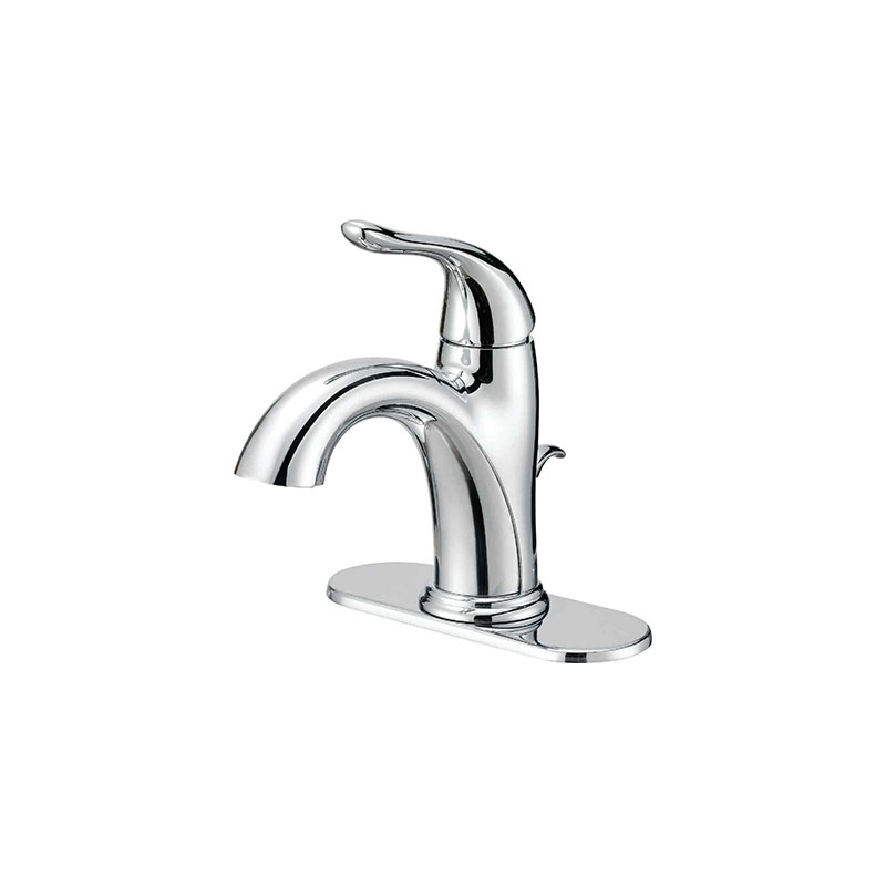 Single handle, 4-inch centerset bathroom faucet with quick connect pop-up drain. Lead-free brass body. t. Optional deck plate included. ADA (Americans with Disabilities Act) compliant.