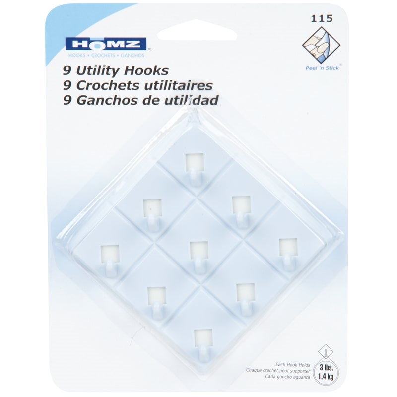 Homz Utility Adhesive Hook With Peel ‘n Stick Tape (9 Pack)