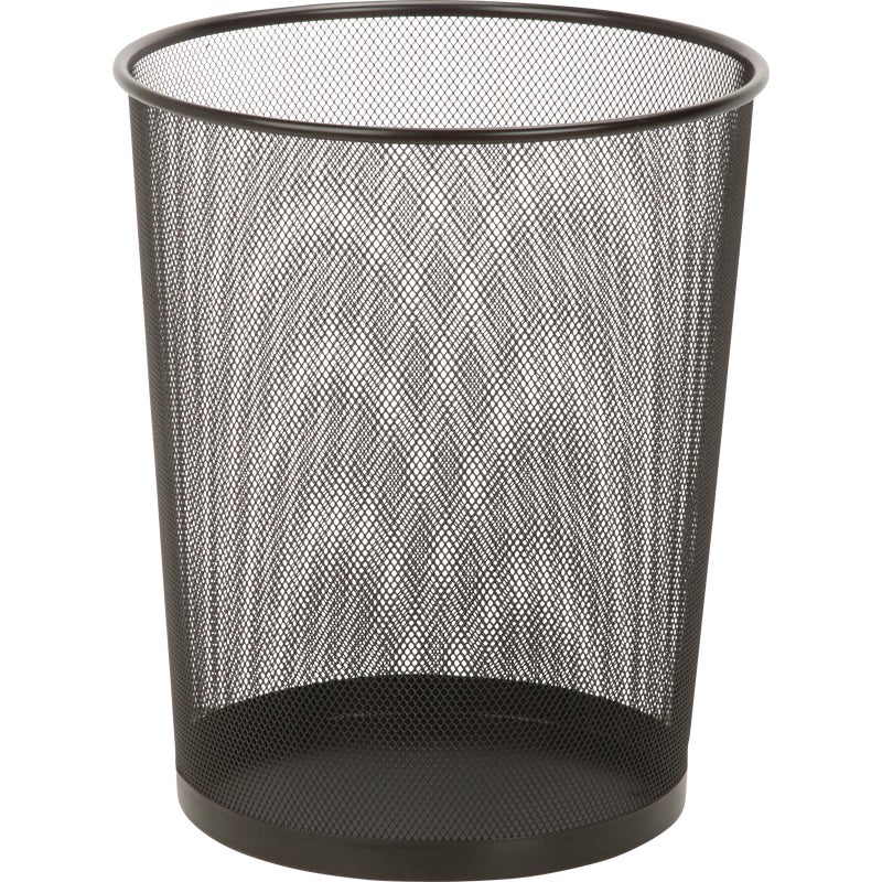 - Black 18 liter mesh metal wastebasket.