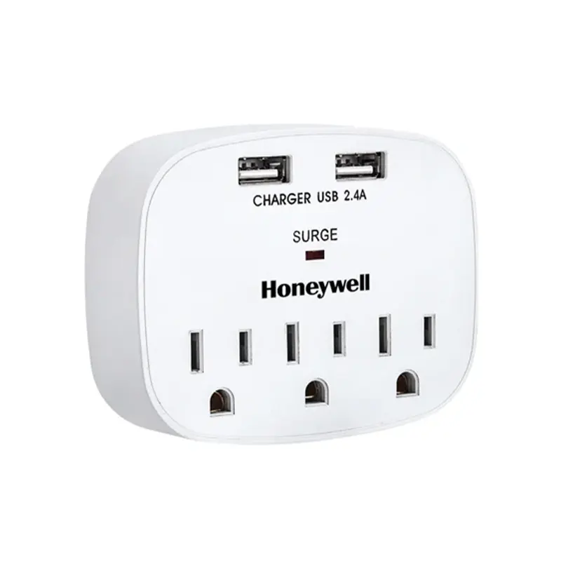 Honeywell 3 Outlet 2 USB Ports Wall Surge Protector & Extender