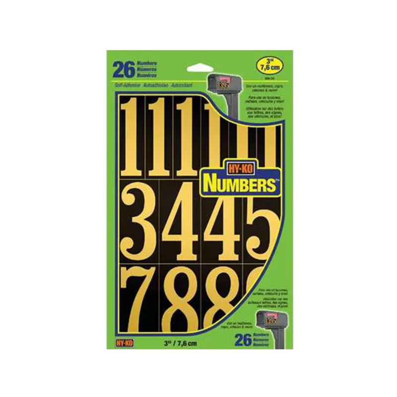 Hy-Ko polyester numbers features unlimited uses in hardware, home improvement, stationery, and sporting goods departments. Can also be used on mailboxes, signs, vehicles and more. Weather resistant.