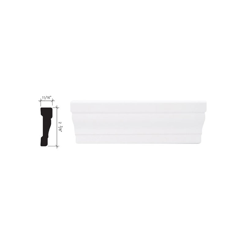 Inteplast Polystyrene Crystal White Pre-finished Colonial Casing is easy to install. Moisture-resistant, ideal to use anywhere in the house including basements, bathrooms, or kitchens. No sanding, painting, or staining is needed. Features low maintenance, durability, stain resistance, and style. Cuts, drills, and routs like wood products with the same strength and beauty as wood. Dimensions: 11/16″ W. x 2-3/8″ H. x 7′ L.