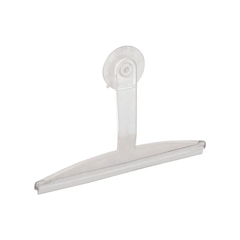 Keep bath surfaces squeaky clean with the 12 in. Suction Squeegee in Clear. Durable, clear plastic construction and a simple design make this squeegee a timeless addition to any bathroom set. An attached suction cup makes storing this squeegee a snap, while its flexible blade allows for easy use and cleaning.