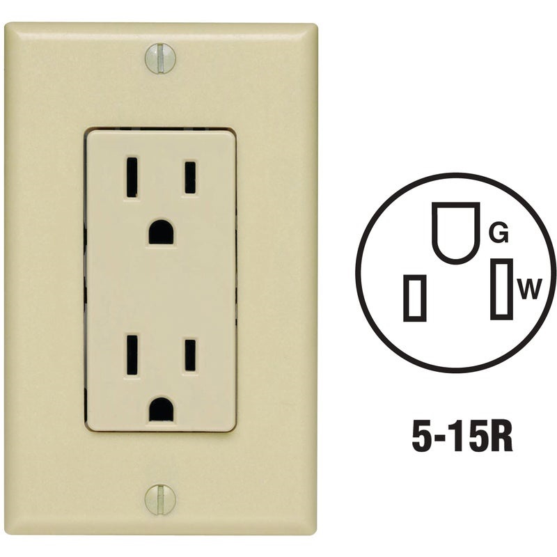 Leviton Decora 15A Ivory Residential Grade 5-15R Duplex Outlet