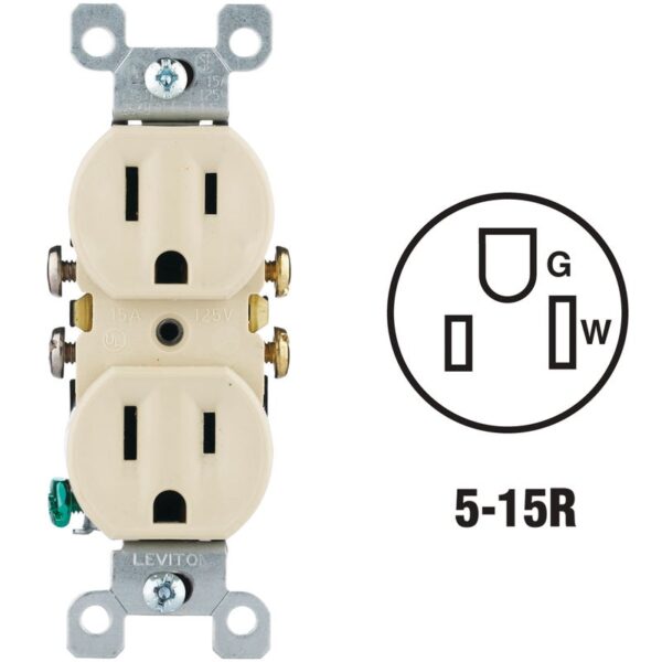 Leviton 15A Ivory Residential Grade 1-15R Duplex Outlet