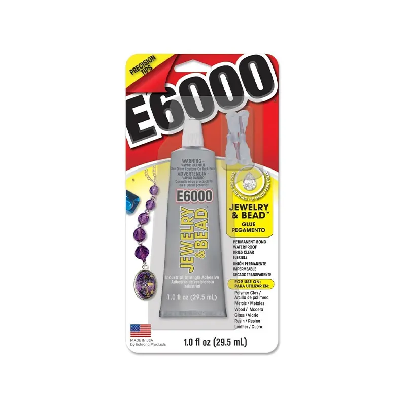 E6000 Jewelry & Bead Glue allows small adhesive drops for fine, precise, controlled and no mess applications. Precision tips make this perfect for securing knots and permanently attaching most any type of stone, gem, crystal, or bead to jewelry finds. Also great for base metal, silver, copper and gold jewelry pieces.