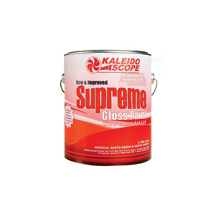 KALEIDOSCOPE SUPREME GLOSS SUNSHINE. An alkyd paint providing a luxurious gloss finish with excellent exterior weathering and fungus resistance. Suitable as a primer used on wood surfaces. For interior and exterior wood, metal and concrete surfaces that has been appropriately primed. Primers are available based on specified surfaces. High Gloss.
