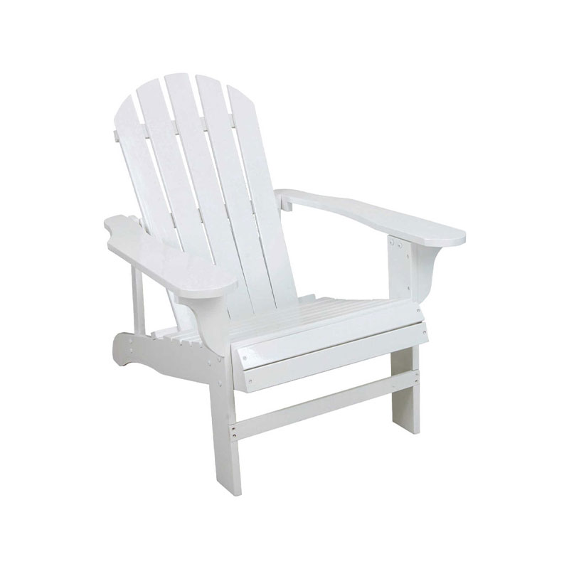 Hardwood Adirondack chair. Features the classic look and comfort of an Adirondack chair. Made with acacia hardwood, features a fanned plank pattern back and a resilient finish. Excellent for lounging by the fire or bringing to the pool or beach. Weight capacity is 250 pounds. Includes zinc-plated hardware. Some assembly required.