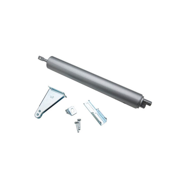 Medium duty air controlled door closer is designed for use on out swinging wood or metal doors up to 1-3/8″ thick. Door closing speed is fully adjustable. 2 hole end plug allows closing force to be regulated.