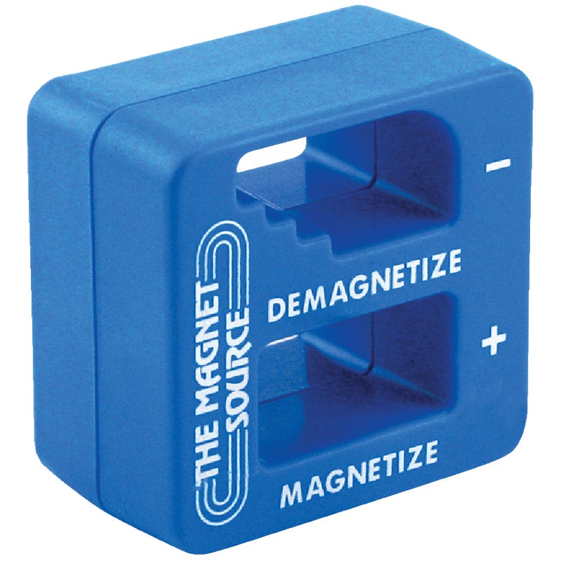 Quickly and easily magnetize small tools so they attract screws or nuts for easy starting and removing. Insert a screwdriver or nut driver into the hole, pull it out and it’s magnetized. Perfect for do-it-yourselfers, mechanics, and electricians.