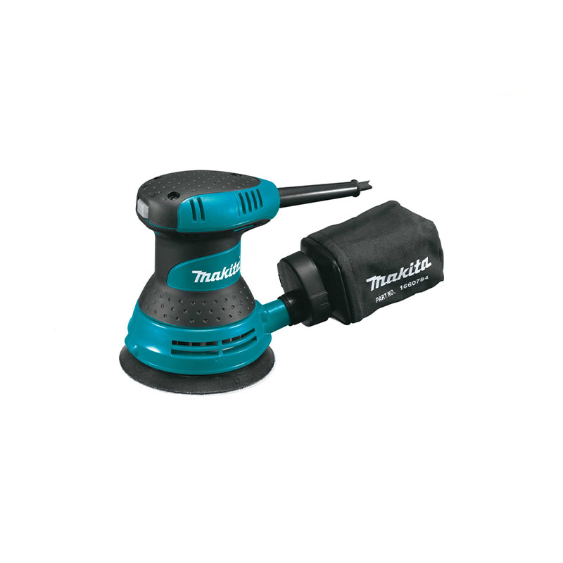 Wide range of uses from aggressive stock removal to ultra-fine finishes. Features eccentric orbit plus rotation which duplicates natural hand-sanding action. 12,000 OPM, 3A motor. Double insulated. Palm-grip design. Dust collection through the pad with a dust collection bag. Uses an 8-hole quick changing hook and loop backed sandpaper with pre-punched holes. Includes (1) dust bag (166078-4), (1) plastic tool case (183782-0), and (1) dust bag nozzle (416063-0).