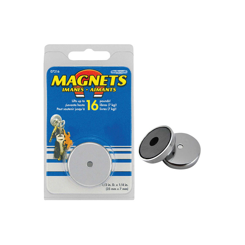 Use to position, lift, hold, and mount keys, shoplights, tools, and more. For use on steel surfaces such as refrigerators, machinery, filing cabinets, beams and doors. Magnetic base in chrome plated cup.
