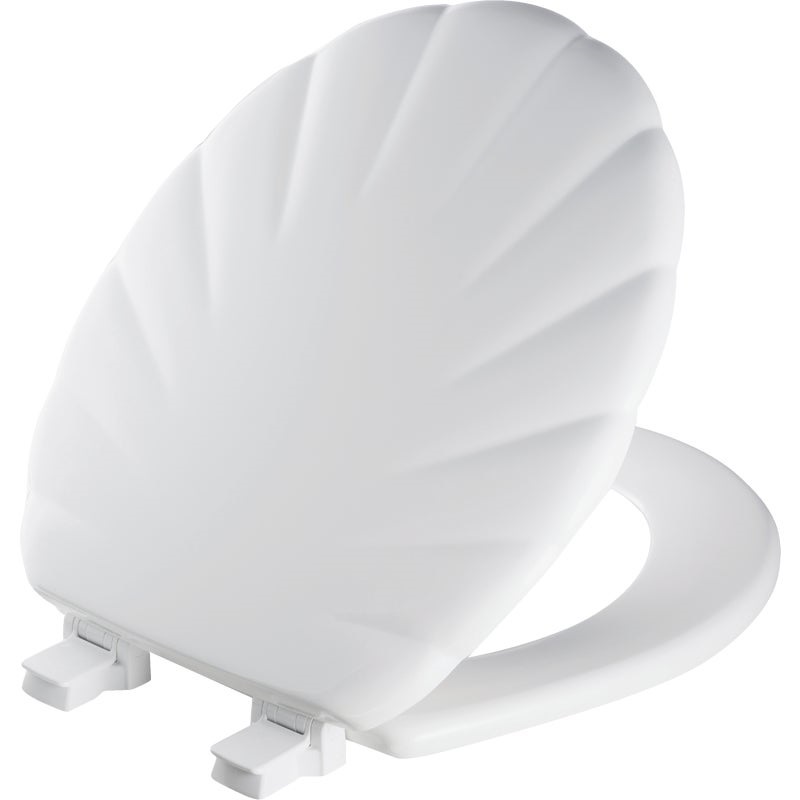 Mayfair Round Closed Front Designer Sculptured Shell White Wood Toilet Seat. This easy to clean and easy to remove toilet seat is stylish while the molded wood material provides durability and stability. The shell sculptured design provides your bathroom a unique accent, complementing your decor.