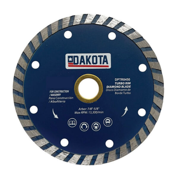 Dakota 7 Inch Turbo Diamond Blade is designed for durability and maximum cutting performance. They last longer than abrasive blades. For use on construction and masonry materials, block, brick, concrete, paver and stone.