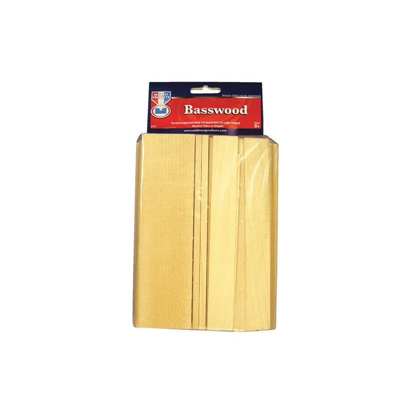 Midwest Product Basswood Econo Board is a versatile, premium‑cut basswood assortment perfect for crafting, modeling, carving, and DIY hobby work. Each bag includes roughly half a board foot (≈ 72 ci) of mixed-size basswood pieces, offering convenient variety and high-quality material for all your creative projects. It features tight homogeneous grain and a smooth finish, making it ideal for carving, model-building, and fine detail work. It allows for a customizable finish where you add paint, stain, and sealers easily, enabling you to mimic other woods or achieve the exact look and finish your project demands.