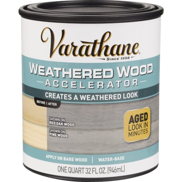 Varathane Wood Accelerator Interior Stain. Varathane Wood Accelerator creates a weathered or aged look on bare or untreated wood.