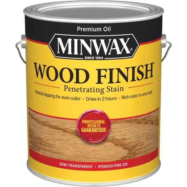 Minwax Wood Finish Penetrating Stain. A penetrating oil-based wood stain, which provides beautiful rich color that enhances the natural wood grain.